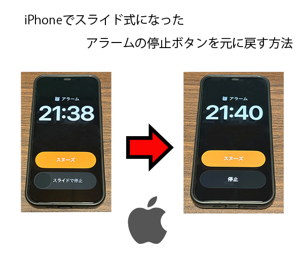iPhoneでスライド式になったアラームの停止ボタンを元に戻す方法