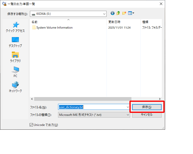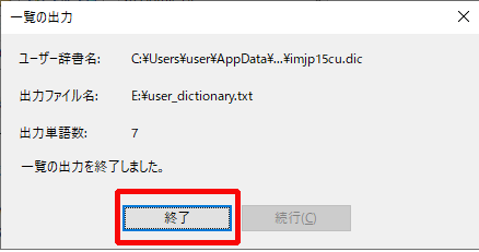 ユーザー辞書をエクスポートする方法(Windows10側)