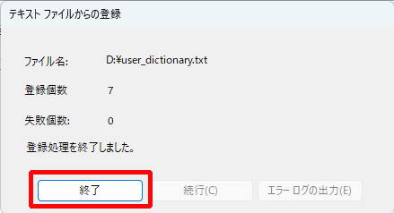 Windows11側ですでに同じ単語が登録されている場合、重複して登録されることがあるため、ユーザー辞書インポート後は重複している内容がないか一度ご確認ください。