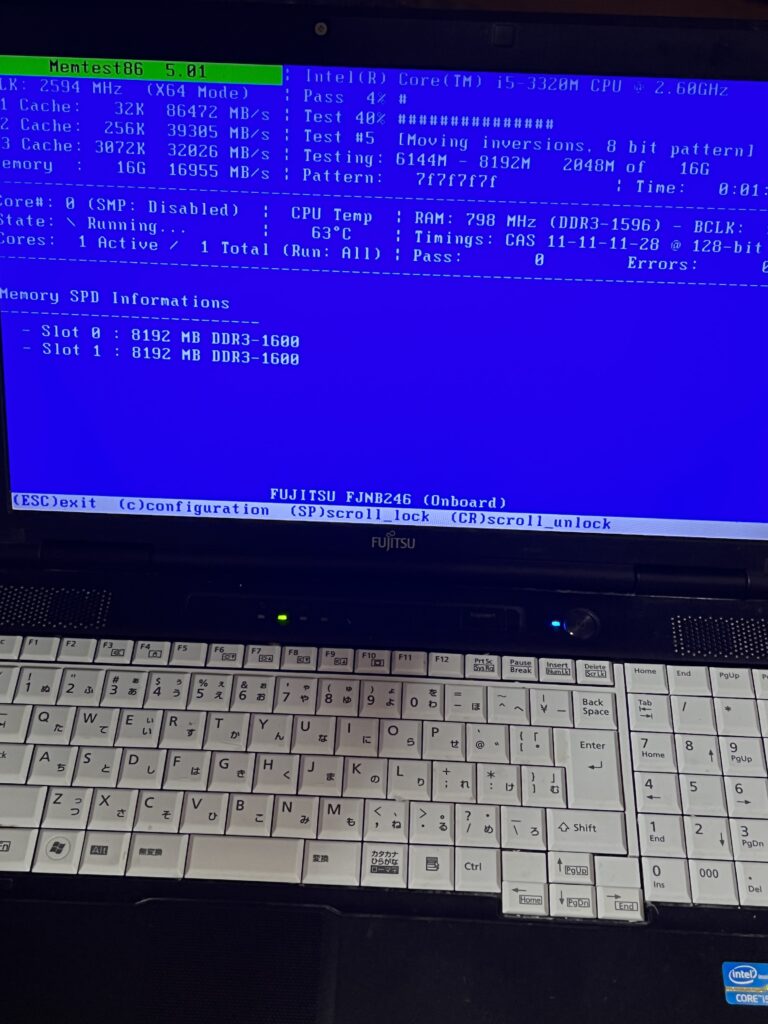 既存のメモリを取り外し新たに購入したメモリを取り付け、アプリにて動作チェックを行いました。