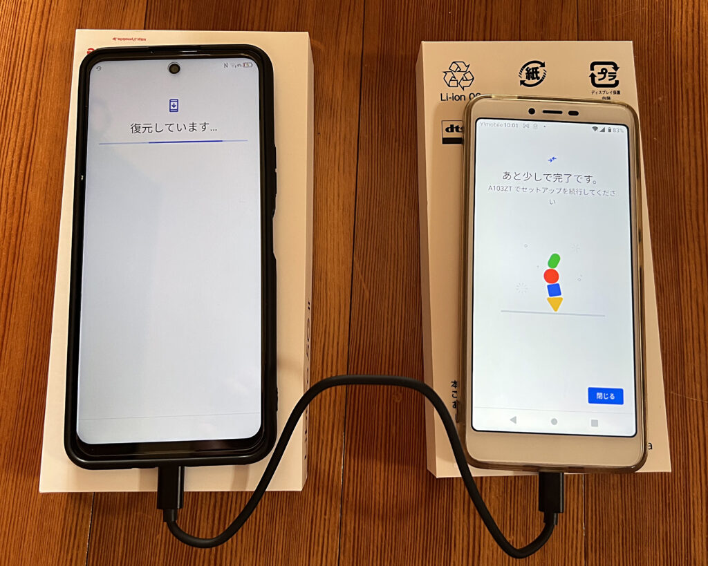 STEP3下記の図のように旧端末と新端末をUSB-Cケーブルで接続し画面の指示に従って作業を進める